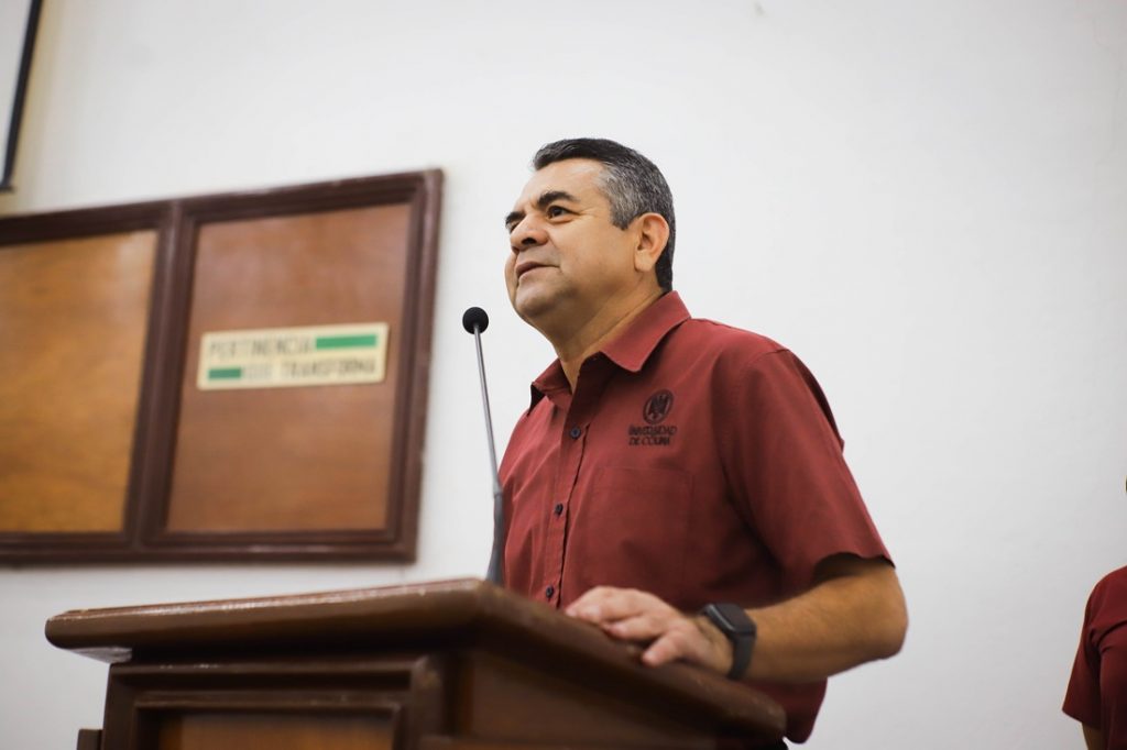 Estuvieron en la ceremonia: Alejandro Palomino García, supervisor escolar de la Delegación Manzanillo por parte de la Dirección General de Educación Media Superior; y Manuel Rivera en representación de la Federación de Estudiantes Colimenses (FEC).