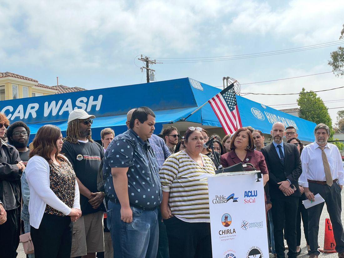 La demanda fue anunciada en un lavadero de carros, ubicado en la ciudad de Torrance, donde el pasado 22 de junio hombres enmascarados que apenas portaban un chaleco con escudos de la Patrulla Fronteriza detuvieron a varios trabajadores de forma violenta, como quedó registrado por en videos que se volvieron virales.