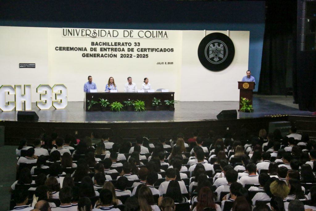 Con un emotivo acto académico en el Paraninfo Universitario, el Bachillerato 33 de la Universidad de Colima, ubicado junto al ISENCO, entregó certificados de estudios a las y los estudiantes de la generación 2022–2025 del Bachillerato General y Bachillerato General Bilingüe.