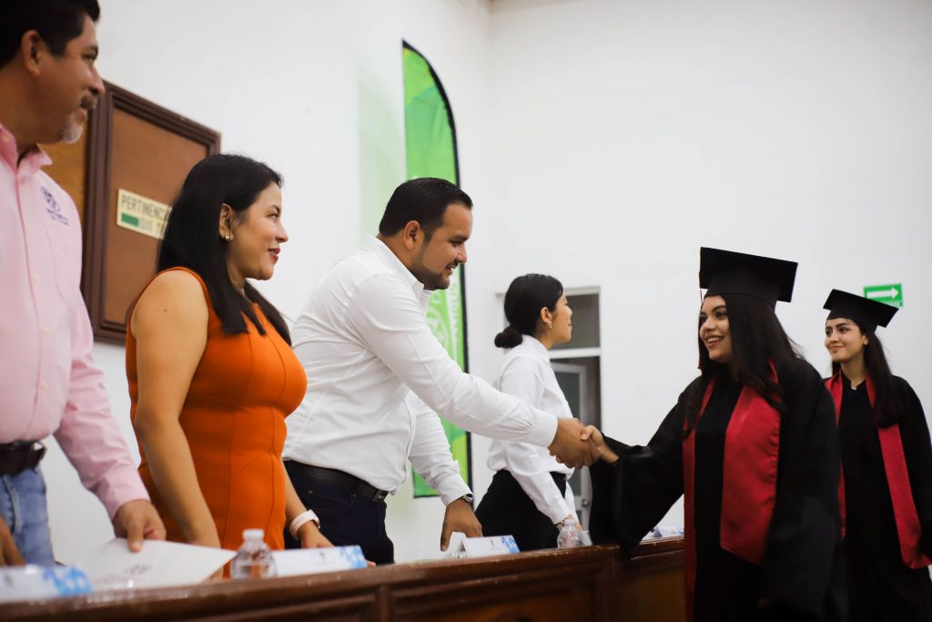 En representación del Rector Christian Torres Ortiz Zermeño, la delegada universitaria en Manzanillo, Ana María Gallardo Vázquez, entregó los certificados y reconoció el esfuerzo colectivo que hizo posible este logro: “La comunidad universitaria está muy orgullosa de ustedes. Este momento representa el fruto de años de dedicación, disciplina y compromiso, tanto suyo como de sus familias y de quienes integran este plantel”.