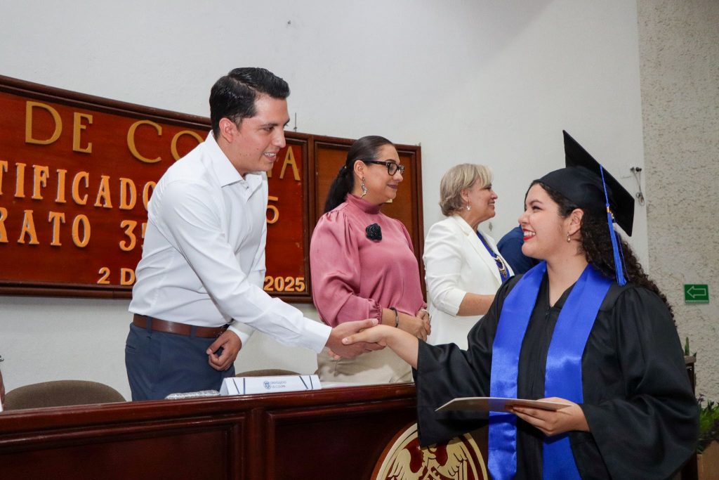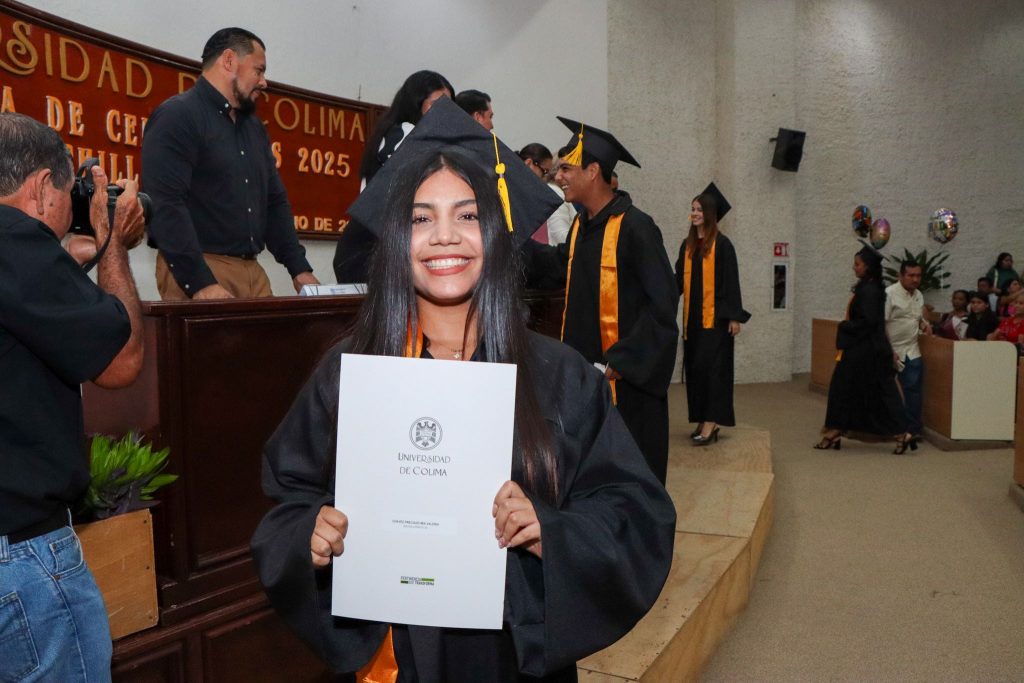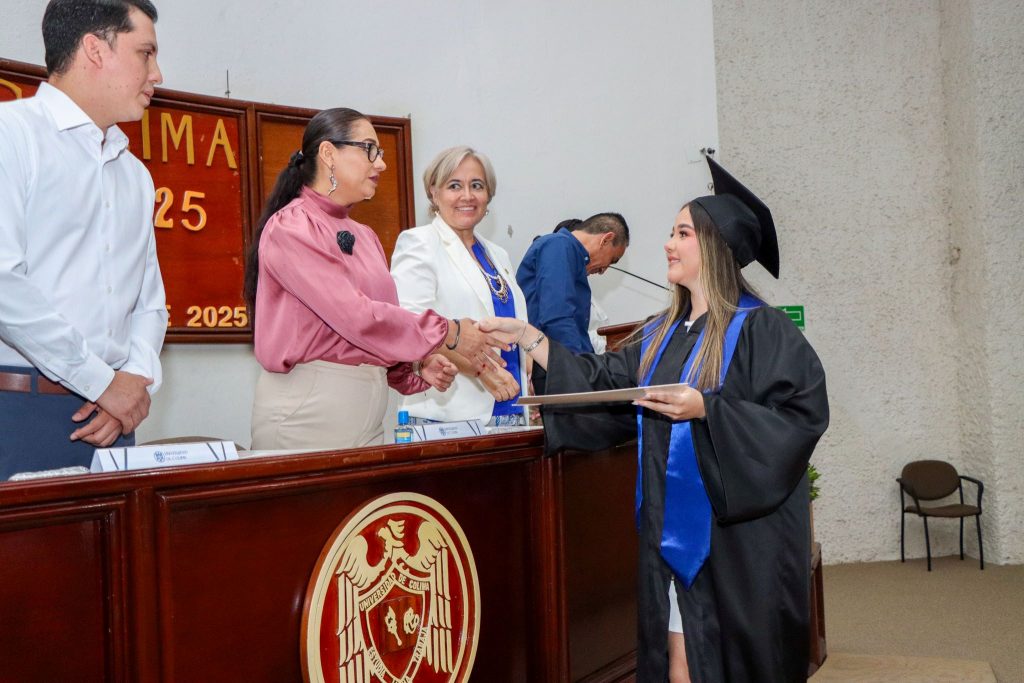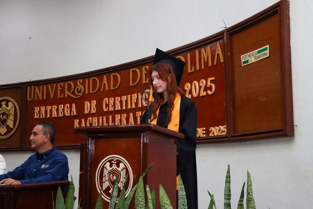 Por su parte, Ana Lilia Moreno Osegueda, delegada universitaria en Tecomán y representante del Rector Christian Jorge Torres Ortiz Zermeño, felicitó a la generación por su esfuerzo y dedicación. Señaló que cada paso superado -exámenes, tareas, proyectos en equipo- forma parte de una historia que hoy se corona con un logro tangible, pero que también deja huellas emocionales y vínculos imborrables: “Vuelen alto, pero nunca olviden de dónde despegaron”.