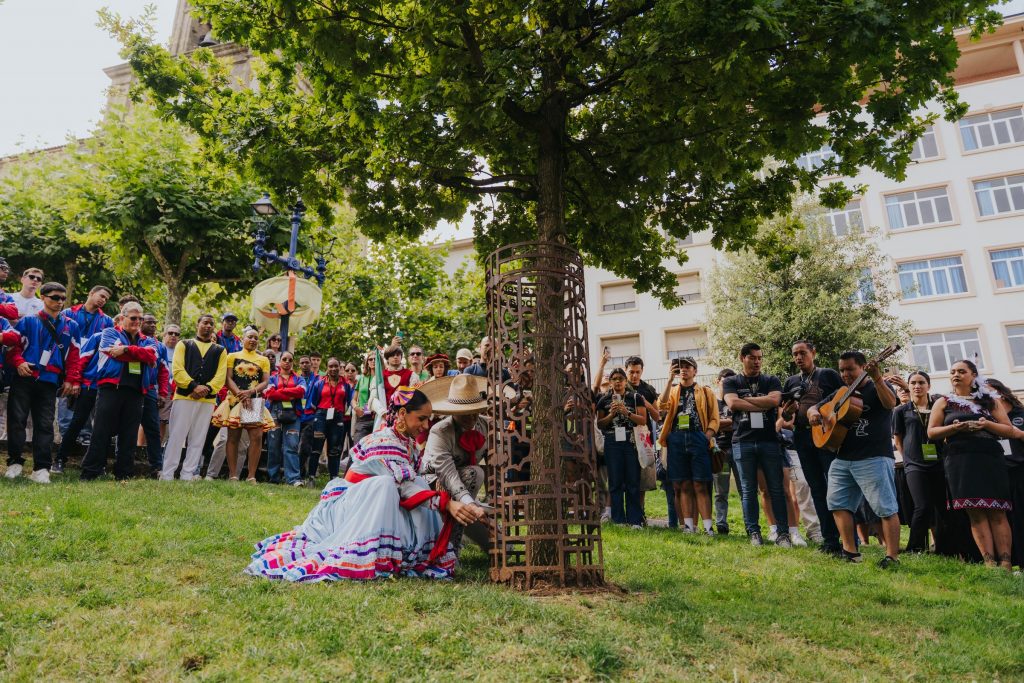 Con una emotiva participación en la ceremonia “Munduko Sustraiak” (Raíces del Mundo), el Ballet Folklórico de la Universidad de Colima dejó su huella en la 50ª edición del Festival Internacional Nazioarteko Folklore Jaialdia, en Portugalete, País Vasco, España. Esa ceremonia, celebrada cada 25 de julio, es uno de los actos más simbólicos del festival, donde los grupos participantes depositan tierra de sus países en las raíces del retoño del árbol de Gernika, como ofrenda de hermandad y respeto entre culturas.