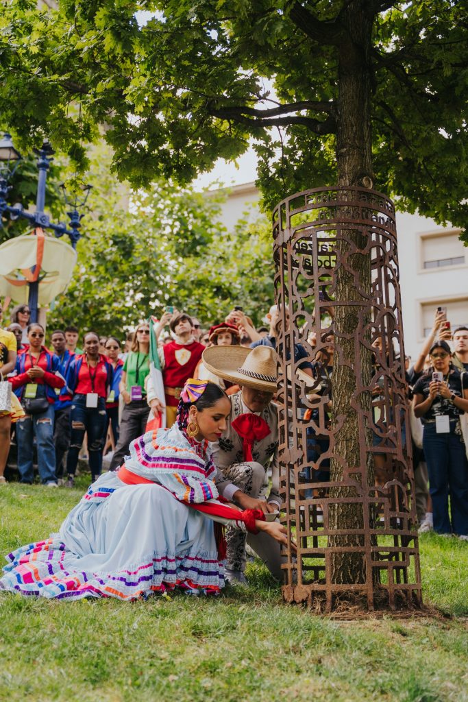 Durante el evento, los artistas mexicanos ofrecieron tierra de Colima y entregaron un sombrero tradicional colimote a la alcaldesa de Portugalete, María José Blanco Gavieiro, como muestra de la riqueza cultural de México. La ceremonia tuvo lugar en el Parque de la Torre de Salazar, junto a la escultura diseñada por el artista Juanjo Novella, que resguarda el joven árbol de Gernika como emblema de unión.