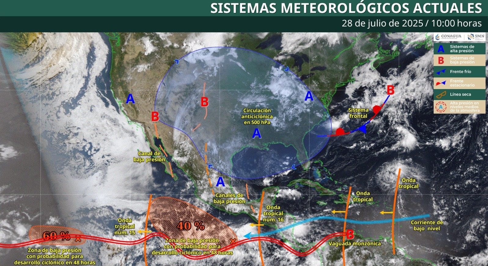La Conagua, a través del Servicio Meteorológico Nacional, mantiene vigilancia permanente sobre estos sistemas y recomendó a la población mantenerse informada a través de fuentes oficiales, así como seguir las indicaciones de protección civil en caso de que alguno de estos sistemas evolucione y represente riesgo para las costas mexicanas.