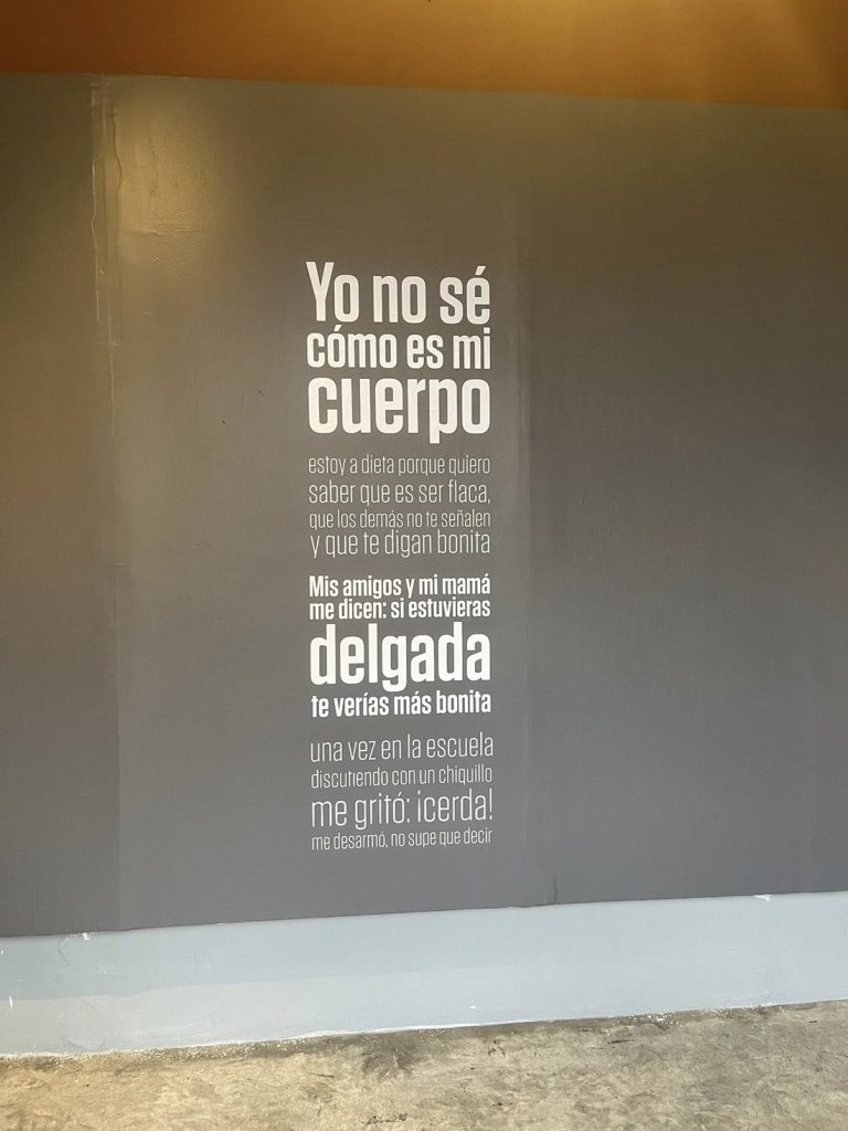 “El cuerpo es una construcción simbólica, no una realidad en sí misma, de ahí que la forma de mirar el cuerpo no sea igual en las diferentes sociedades. A partir de esta premisa realicé una serie de retratos y desnudos a mujeres. ¿Por qué mujeres? Porque considero que no es lo mismo, en esta sociedad de apariencias, ser una mujer gorda que un hombre en las mismas condiciones. Hay una exigencia más violenta hacia la feminidad”, escribe Aridjis en 1 de los 2 textos de presentación de su obra.