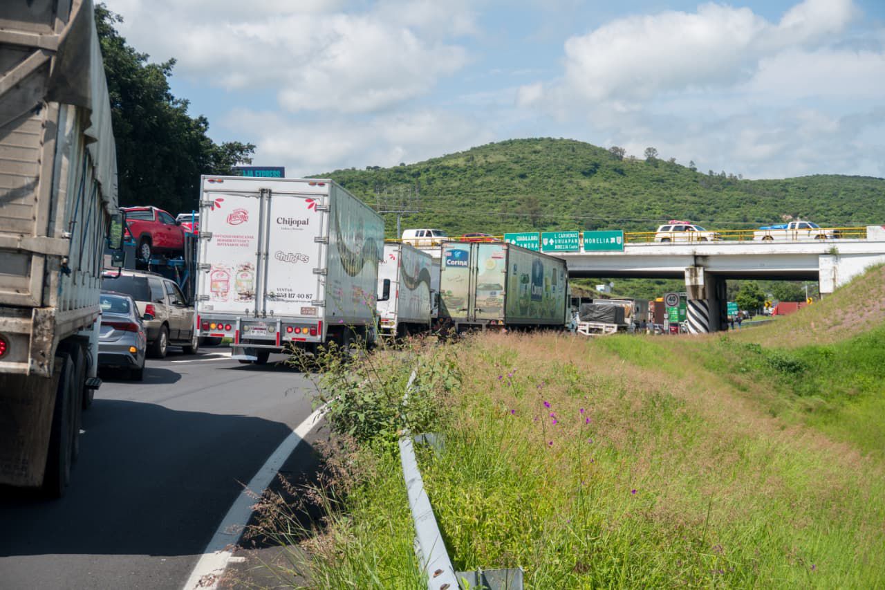 Un grupo de transportistas de la organización “TAMEXUN” bloqueó la autopista Morelia-Guadalajara, en el tramo de la carretera Maravatío-Zapotlanejo, justo a la altura del Lago de Cuitzeo, en Michoacán, para exigirle a las autoridades la liberación de uno de sus compañeros, así como el cese de las extorsiones por parte de la Guardia Nacional.