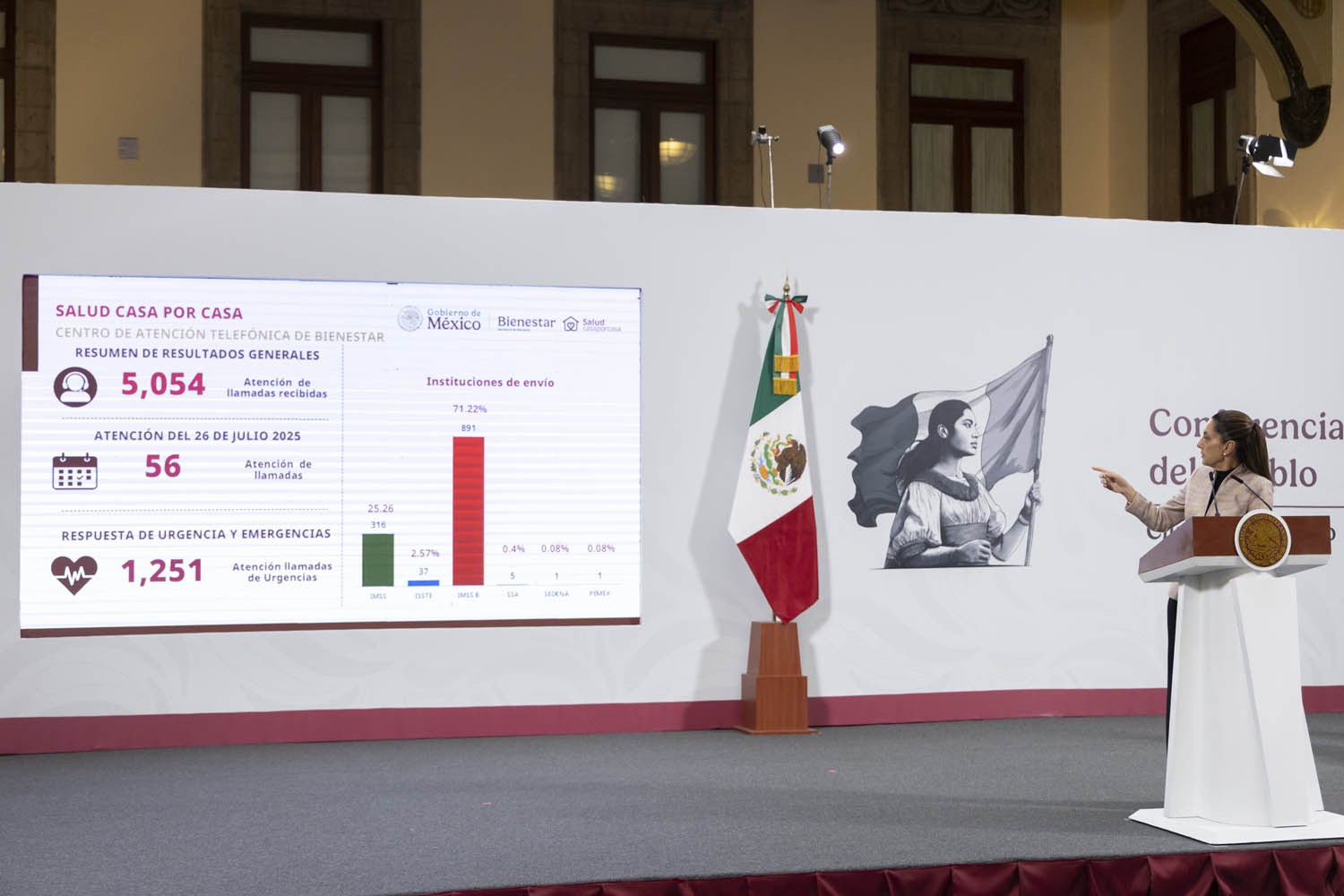 “Se han salvado vidas ya con el programa Casa por Casa, personas que tenían presiones muy altas o algún otro padecimiento, y que de inmediato todo el personal de Salud Casa por Casa —que, la verdad, son de primerísima, les mando un saludo, un abrazo, igual que a los servidores de la nación— de inmediato toman la iniciativa, tienen su protocolo de cómo enviarlos a hospitales”, destacó.