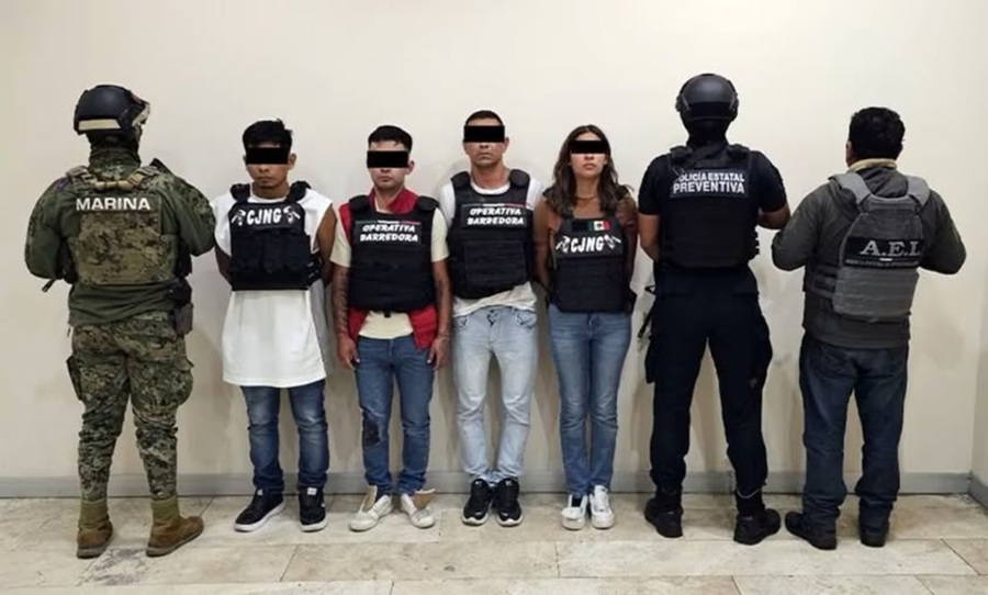 En el lugar, fueron capturados Agustín “N”, alias El Maken de 21 años; Astrid “N”, de 18 años; Dony “N”, alias El Pilas de 35 años, de origen guatemalteco; y Juan Manuel “N”, alias El Rolas de 35 años, oriundo de Jalisco.
