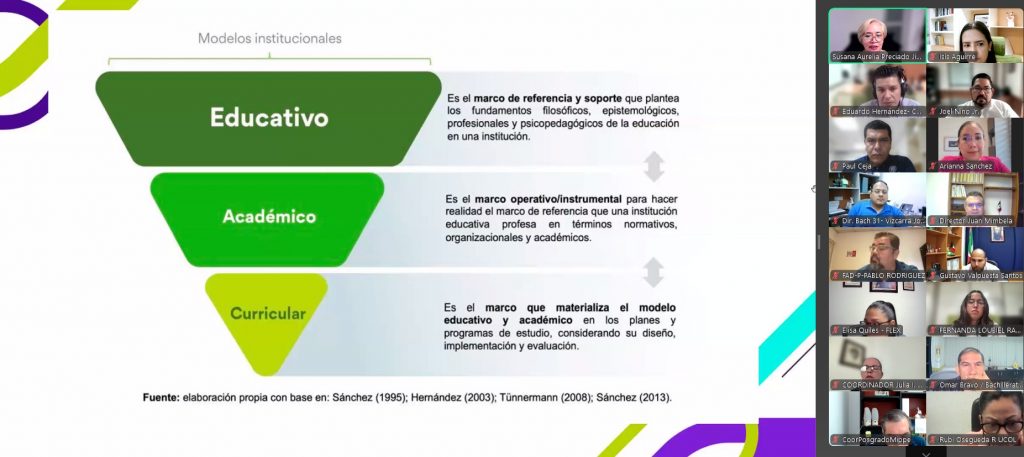 Explicó que el modelo académico funciona como el marco operativo e instrumental, donde la institución determina las normas y la organización interna de sus planteles. Por otro lado, el modelo curricular es la materialización concreta del modelo educativo y académico en planes y programas de estudio.