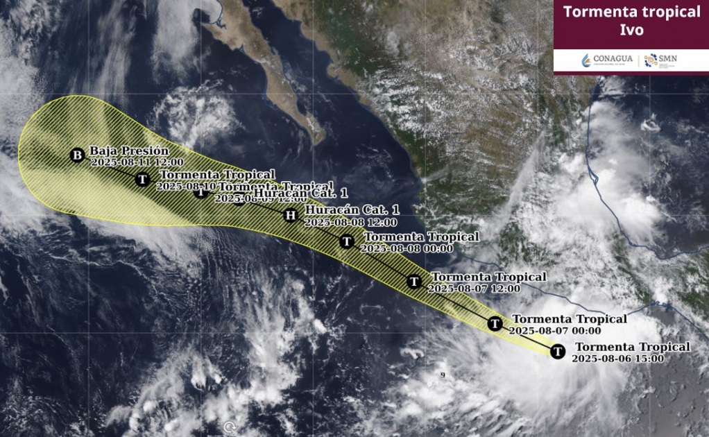 Ivo presenta vientos sostenidos de 65 km/h y rachas más intensas, con posibilidad de fortalecerse gradualmente. De continuar con esta evolución, podría alcanzar la categoría de huracán hacia el fin de semana.