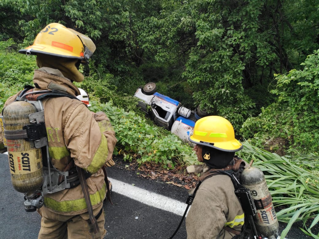 La Unidad Estatal de Protección Civil (UEPC) informa en un comunicado de prensa que se registró un accidente de tránsito sobre la carretera Manzanillo a Camotlán de Miraflores, cercano a la comunidad de La Lima, en el municipio porteño, en el que un vehículo de 4 toneladas que se utiliza para distribuir gas LP, perdió el control y salió del camino, terminando volcado en un pequeño barranco de aproximadamente cuatro metros de profundidad.