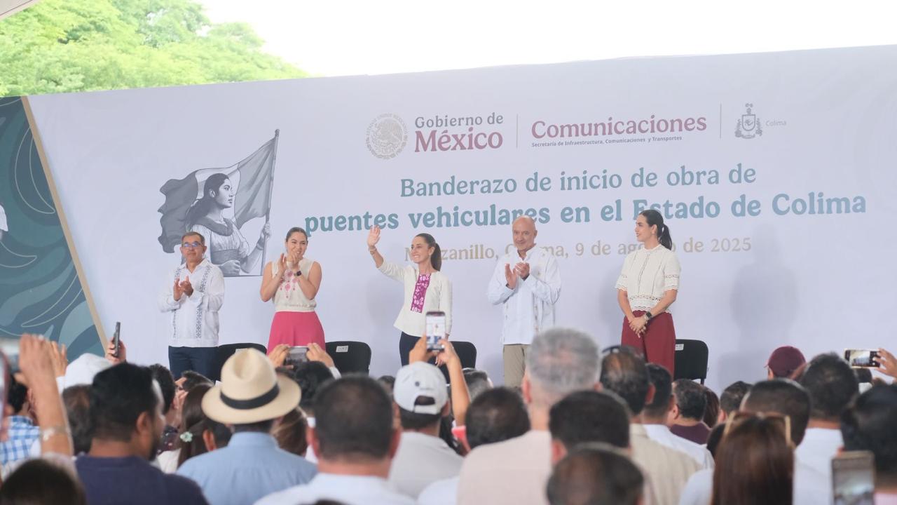 En pleno ingreso a la ciudad y puerto de Manzanillo, la presidenta Claudia Sheinbaum dio el banderazo de inicio a obras de puentes vehiculares en el estado de Colima con una inversión de 2 mil millones de pesos.