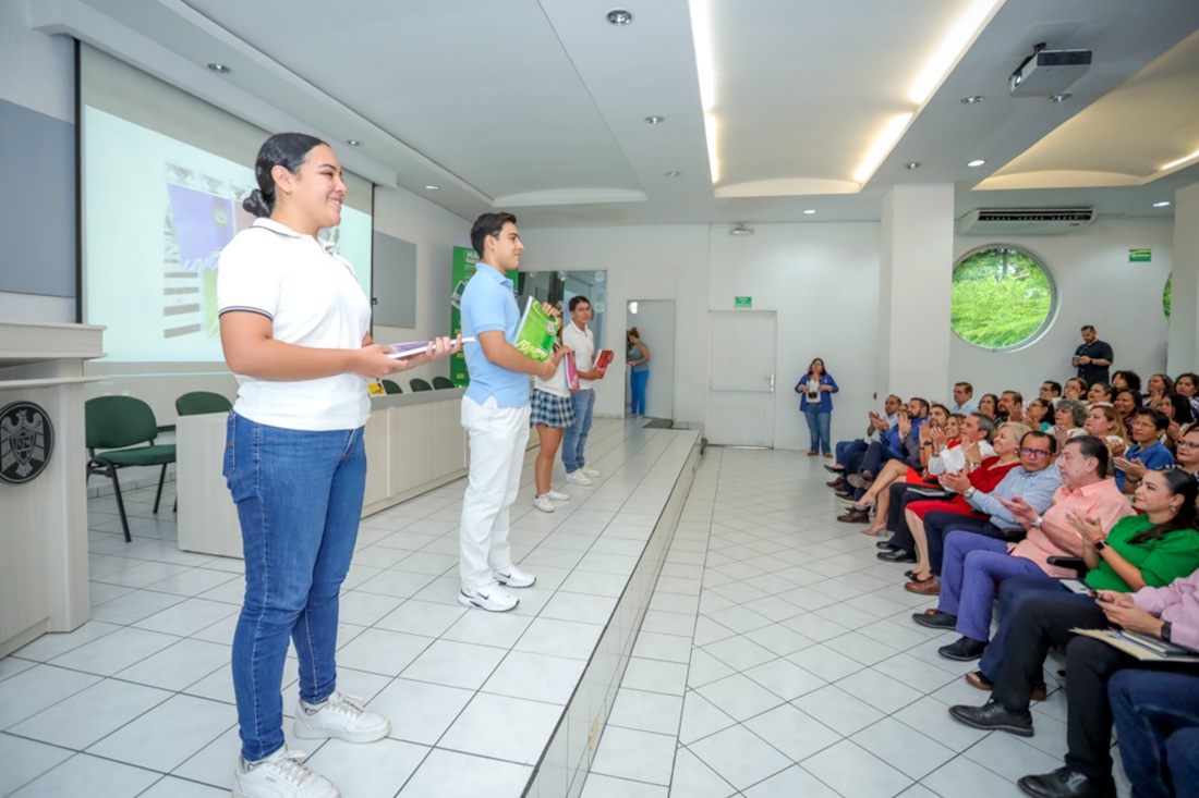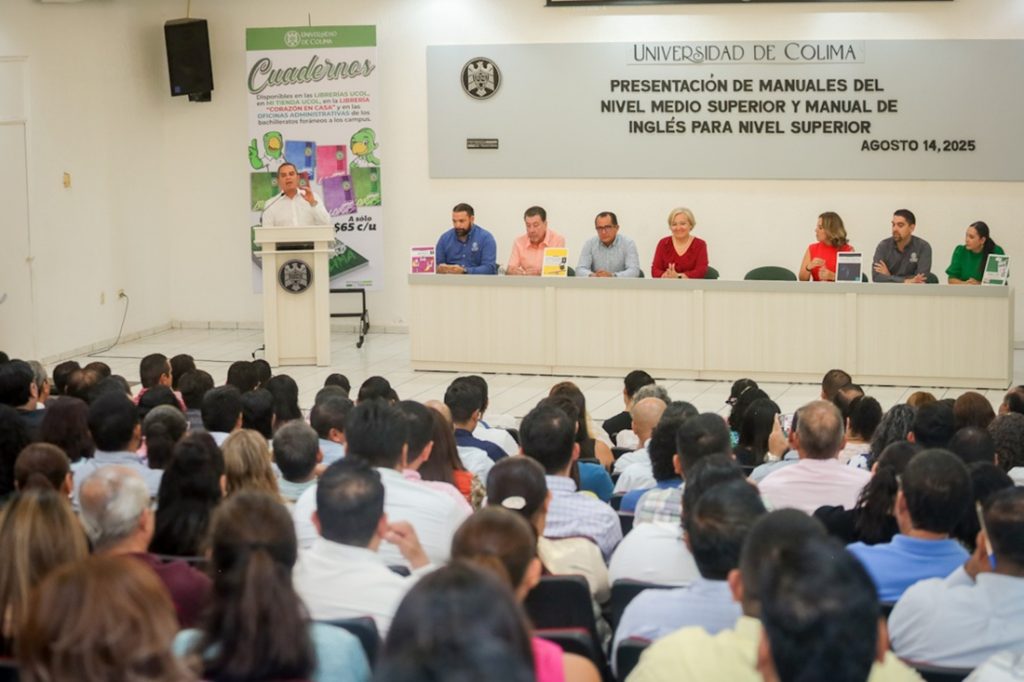 En el auditorio de la Facultad de Enfermería, el Rector de la Universidad de Colima (UdeC), Christian Jorge Torres Ortiz Zermeño, presentó los nuevos manuales para el nivel medio superior y el manual de inglés para el nivel superior, resultado del trabajo colaborativo de docentes universitarios y de varias dependencias universitarias.