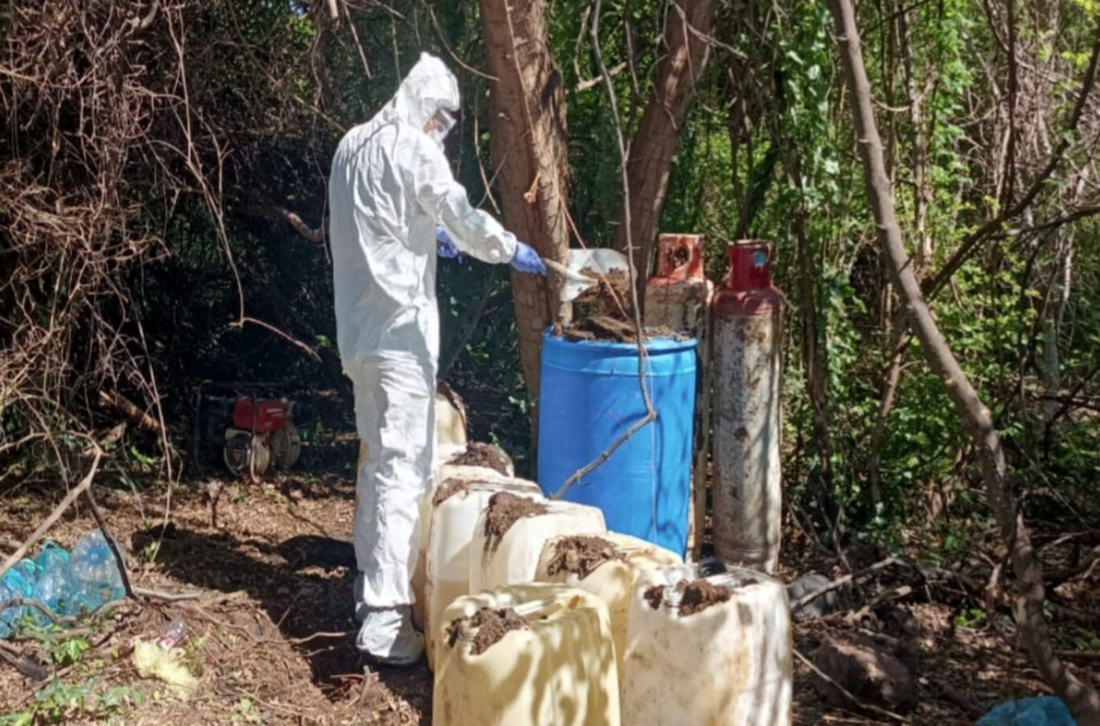 De acuerdo con la dependencia federal, en el lugar incautaron alrededor de 120 mil litros de sustancias químicas, entre ellas acetona, tolueno, sosa cáustica, ácido clorhídrico, ácido sulfúrico, etanol, acetato de plomo, alcohol bencílico, entre otras.