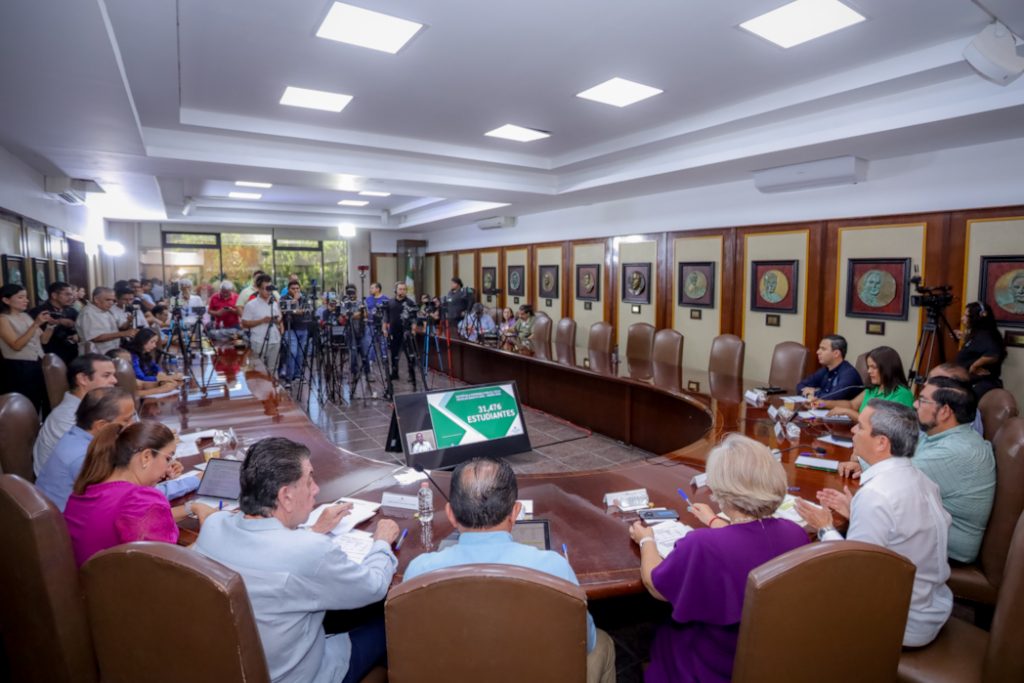 Como parte del compromiso institucional asumido con las autoridades federales para incrementar de manera permanente la cobertura y matrícula, el Rector de la Universidad de Colima, Christian Jorge Torres Ortiz Zermeño, anunció en rueda de prensa que en el Proceso de Admisión 2025 la Casa de Estudios alcanzó un incremento histórico, al registrar un total de 31,476 estudiantes. Esta cifra representa un aumento del 3.27% respecto al año anterior y un 11.5% en comparación con 2021.