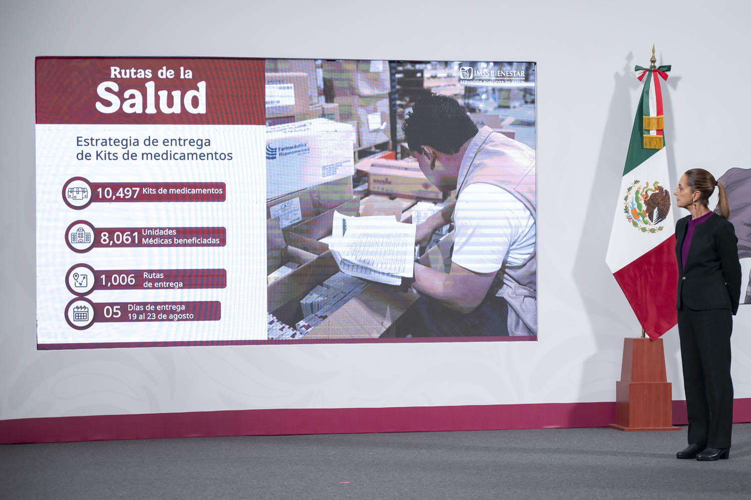 Según información de un comunicado de prensa, el director general del IMSS Bienestar, Alejandro Svarch Pérez, detalló que las “Rutas de la Salud” comienzan, del 19 al 23 de agosto, con 1,006 rutas logísticas que entregarán los primeros 10,497 kits con el apoyo logístico de Birmex. Mientras que la próxima semana dicho proceso se implementará en hospitales.