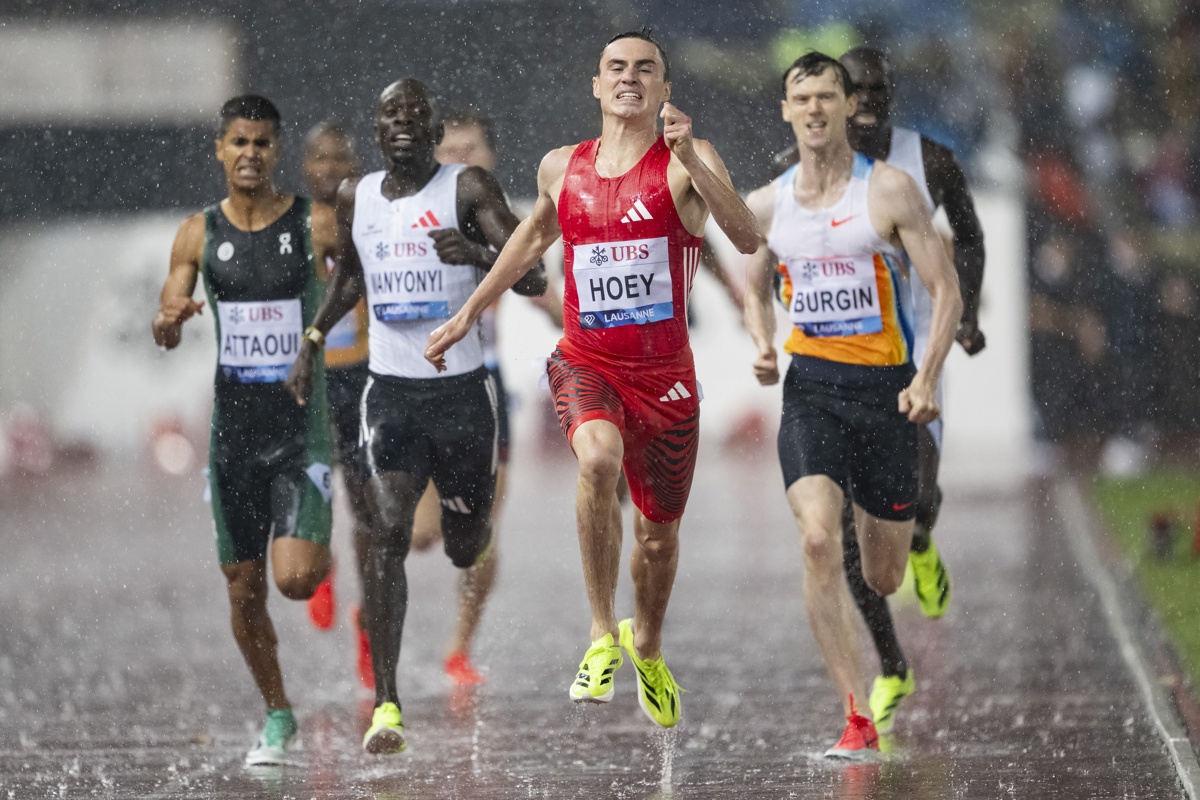 El estadounidense Josh Hoey, la neerlandesa Nadine Visser, la británica Keely Hodgkinson y el jamaicano Oblique Seville fueron los protagonistas de la 50ª edición de la Athletissima de Lausana (Suiza), penúltima prueba de la Liga de Diamante, disputada con lluvia y frío.