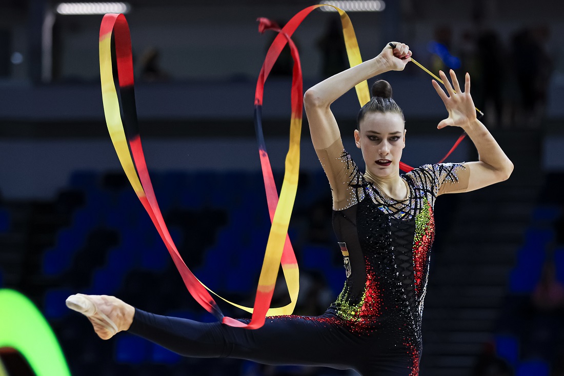 Varfolomeev, campeona olímpica en París, sumó 121.900 puntos (30.100 en aro, 29.850 en pelota, 31.950 en mazas y 30.000 en cinta), superando a la búlgara Nikolova Stiliana, quien se llevó la Plata con 119.300, y a la italiana Sofía Raffaeli, Bronce con 117.950 unidades.