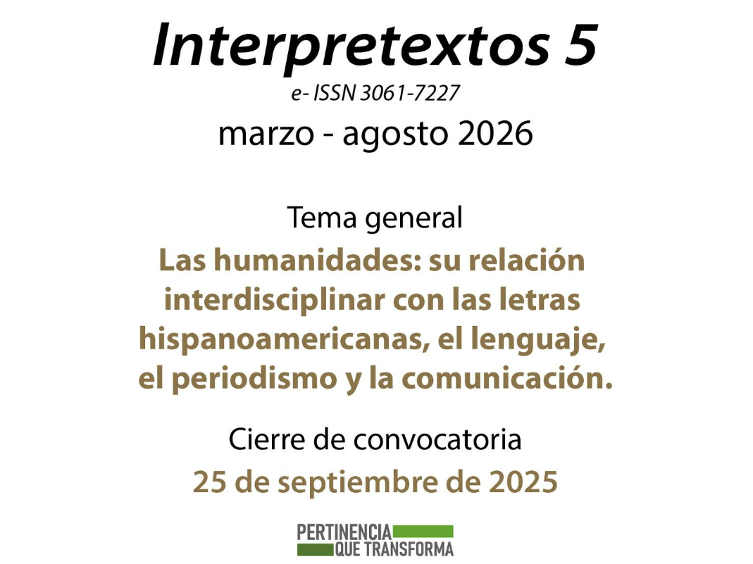 La revista Interpretextos, publicación semestral editada por la Facultad de Letras y Comunicación de la Universidad de Colima, lanzó la convocatoria para colaborar en su número 5, correspondiente al periodo marzo-agosto 2026. La temática general girará en torno a “Las humanidades: su relación interdisciplinar con las letras hispanoamericanas, el lenguaje, el periodismo y la comunicación”.