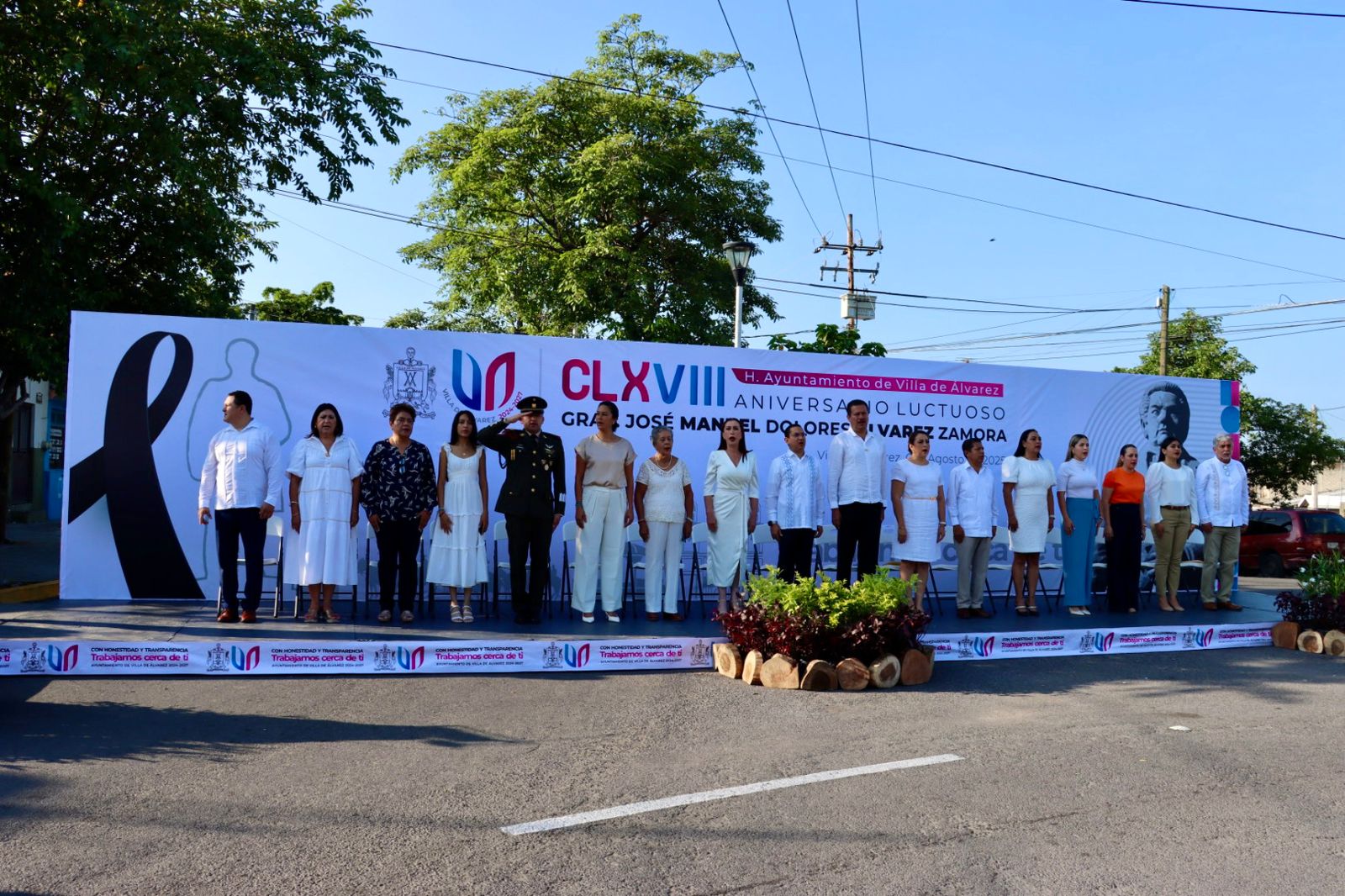 Con una ceremonia cívica celebrada en el monumento erigido en su honor, el Gobierno municipal de Villa de Álvarez conmemoró el 168 Aniversario Luctuoso del General José Manuel Dolores Álvarez Zamora, primer gobernador del estado.