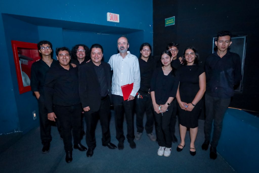 Como parte de la ceremonia, y como un regalo a Juan Villoro, quien también ama la música, se presentó la Orquesta de Jazz del IUBA.