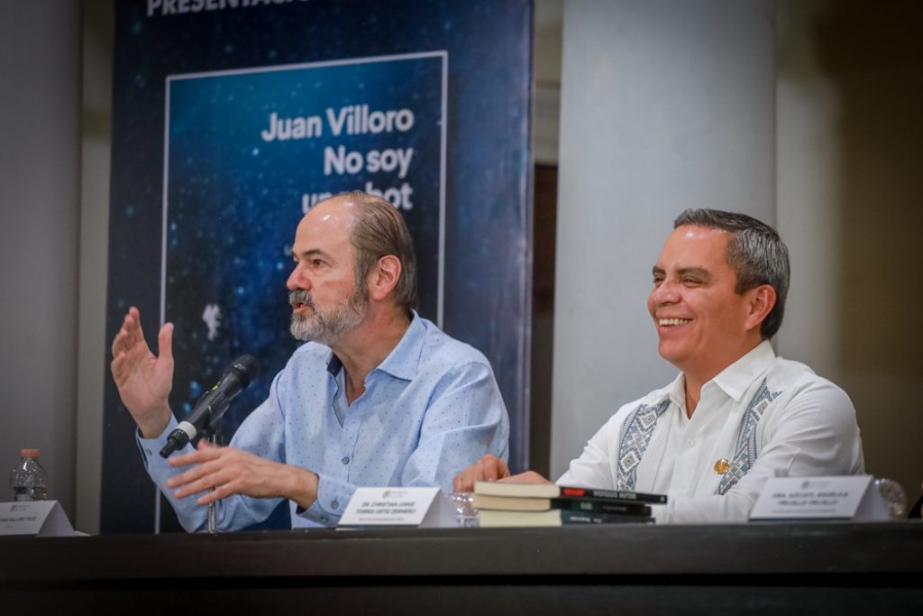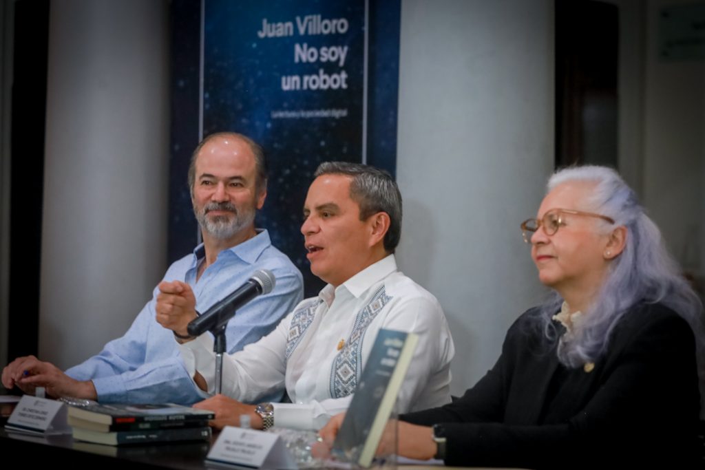 Torres Ortiz Zermeño destacó que Villoro plantea con agudeza “la tensión entre lo que nos hace humanos nuestras emociones, errores y fragilidades, y el crecimiento imparable de la tecnología y la inteligencia artificial”.
