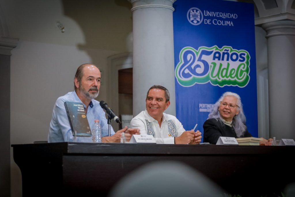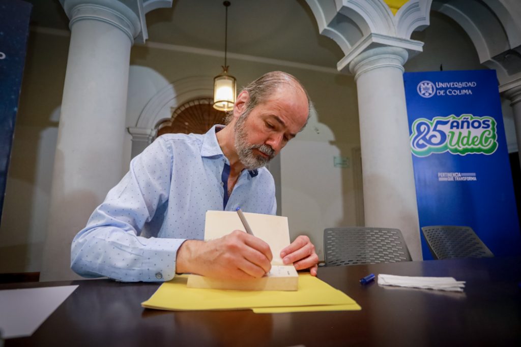 Por su parte, Juan Villoro agradeció la hospitalidad colimense y compartió que su intención al escribir este libro fue reflexionar sobre cómo la tecnología digital ha transformado nuestras costumbres y, en particular, la manera en que leemos. “La lectura ha cambiado de manera radical: vivimos rodeados de textos en teléfonos, pantallas, elevadores, pero muchas veces fragmentados y dispersos, sin continuidad. Hoy pertenecemos a la primera generación que, para entrar a una página web, debe marcar una casilla que dice: No soy un robot. La paradoja es que se lo decimos a un robot, y es él quien nos acredita como humanos”