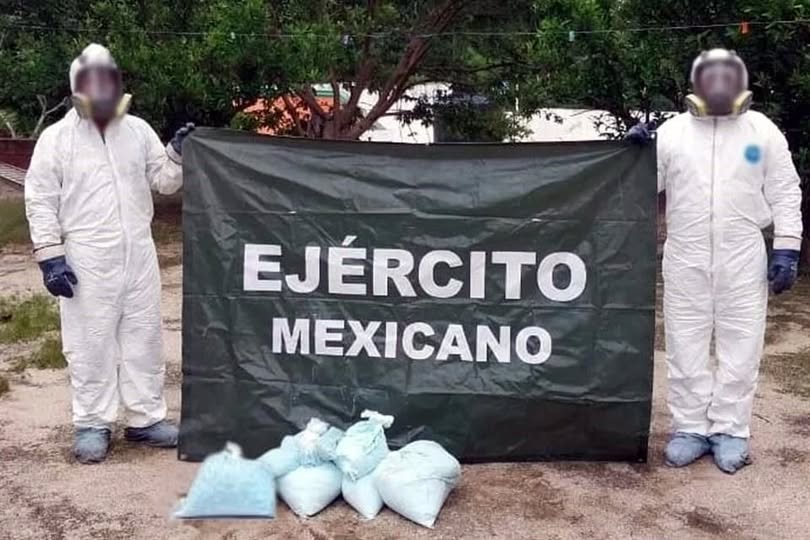 El Gabinete de Seguridad informó que soldados del Ejército Mexicano decomisaron 42 kilos de fentanilo, 21 kilos de cocaína y 9 kilos de fentanilo en pastillas en el poblado de Huixiopa.