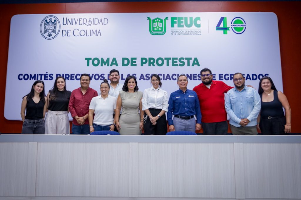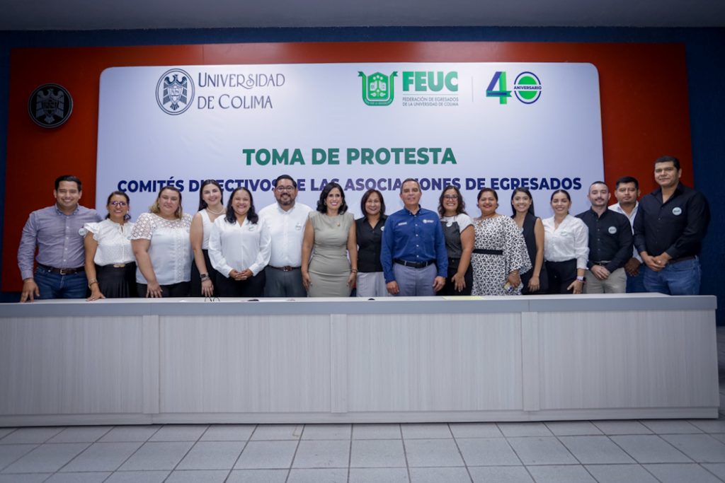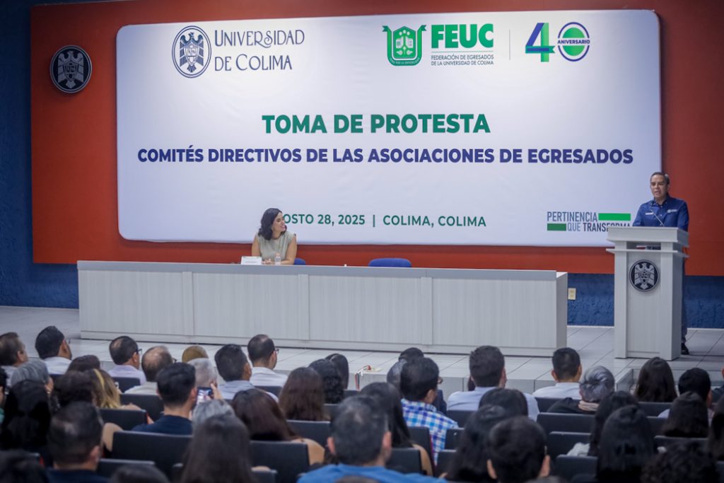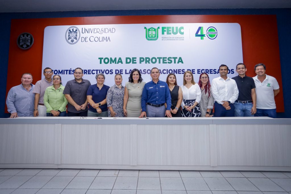 Como parte del proceso de renovación estatutaria de la Federación de Egresados de la Universidad de Colima (FEUC), en la Biblioteca de Ciencias “Miguel de la Madrid Hurtado”, el Rector de nuestra Máxima Casa de Estudios colimense, Christian Jorge Torres Ortiz Zermeño, tomó protesta a los y las integrantes de los comités directivos de 15 asociaciones de egresadas y egresados de la UdeC para el periodo 2025-2027, así como al nuevo Secretario General del Comité Ejecutivo de esa Federación, Ángel de Jesús Bayardo Orozco.