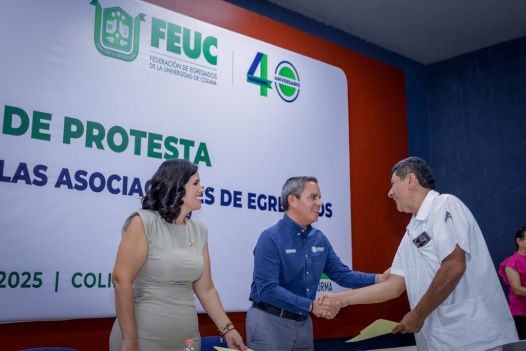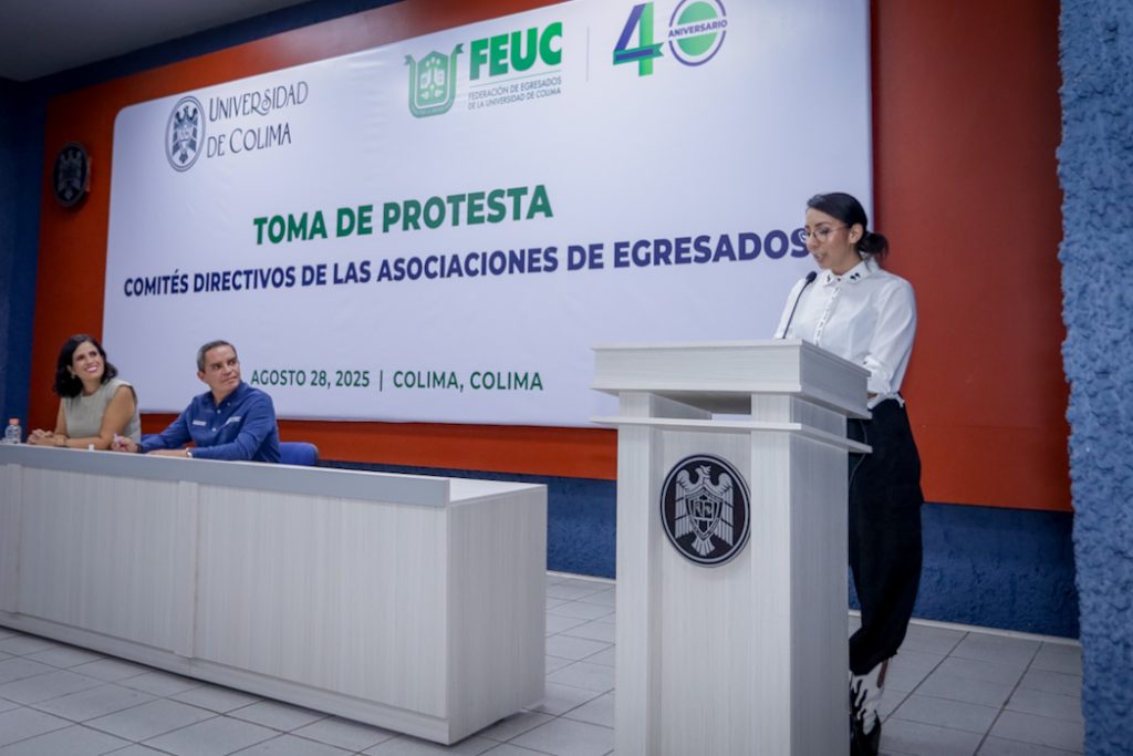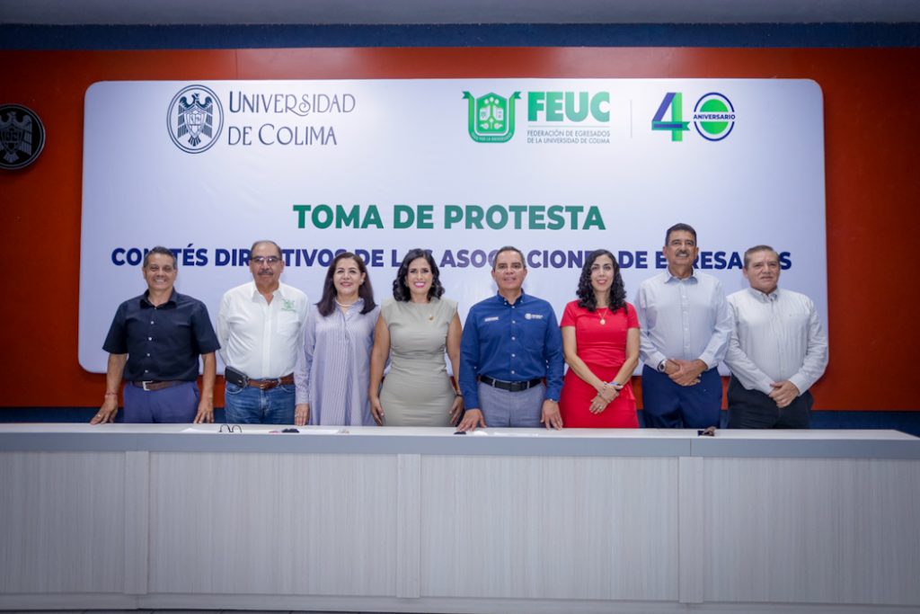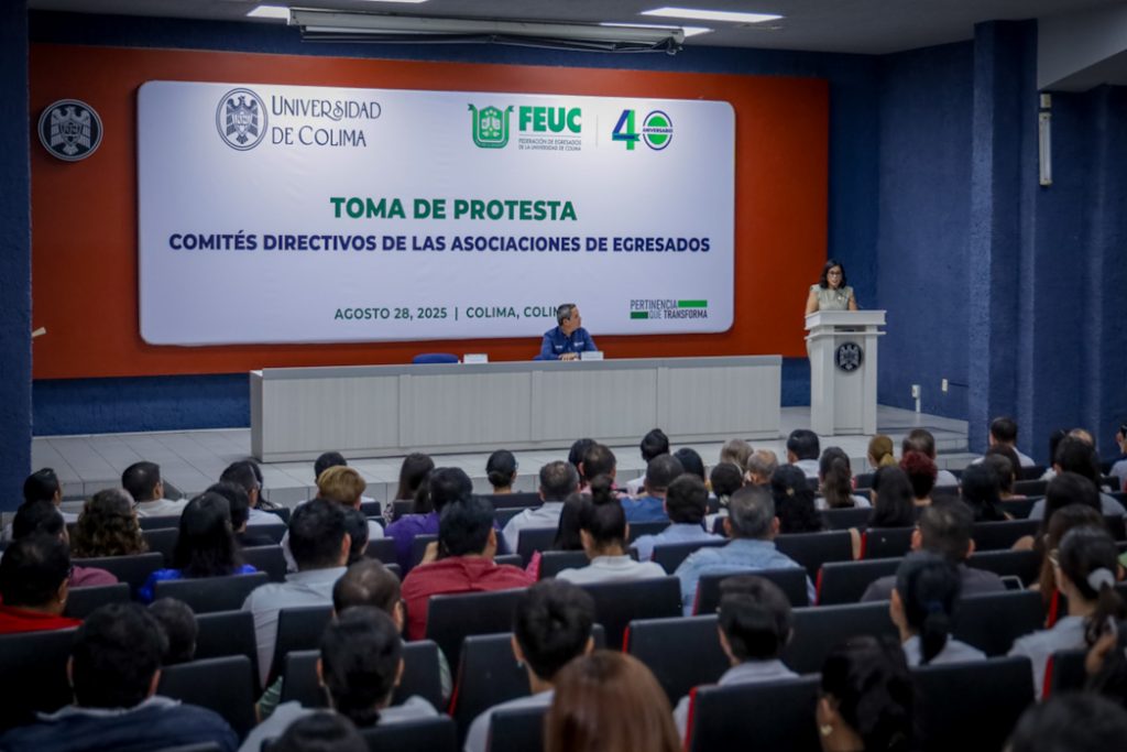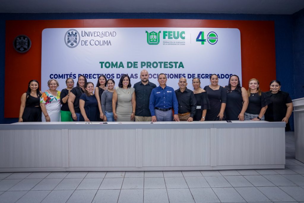 Como parte del proceso de renovación estatutaria de la Federación de Egresados de la Universidad de Colima (FEUC), en la Biblioteca de Ciencias “Miguel de la Madrid Hurtado”, el Rector de nuestra Máxima Casa de Estudios colimense, Christian Jorge Torres Ortiz Zermeño, tomó protesta a los y las integrantes de los comités directivos de 15 asociaciones de egresadas y egresados de la UdeC para el periodo 2025-2027, así como al nuevo Secretario General del Comité Ejecutivo de esa Federación, Ángel de Jesús Bayardo Orozco.