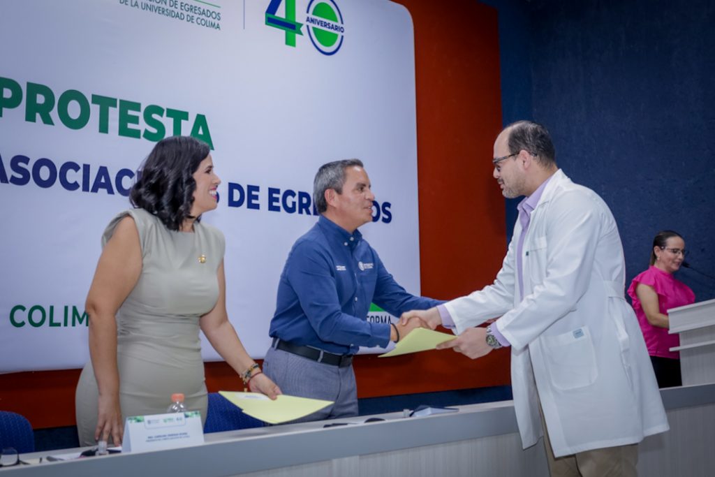 En representación de los comités salientes, Jorge Ricardo Vázquez Sánchez señaló que ser egresado de la Universidad de Colima otorga un profundo sentido de identidad: “Es una pertenencia que transforma nuestras vidas y comunidades y que, organizada, transforma también a nuestra universidad”.