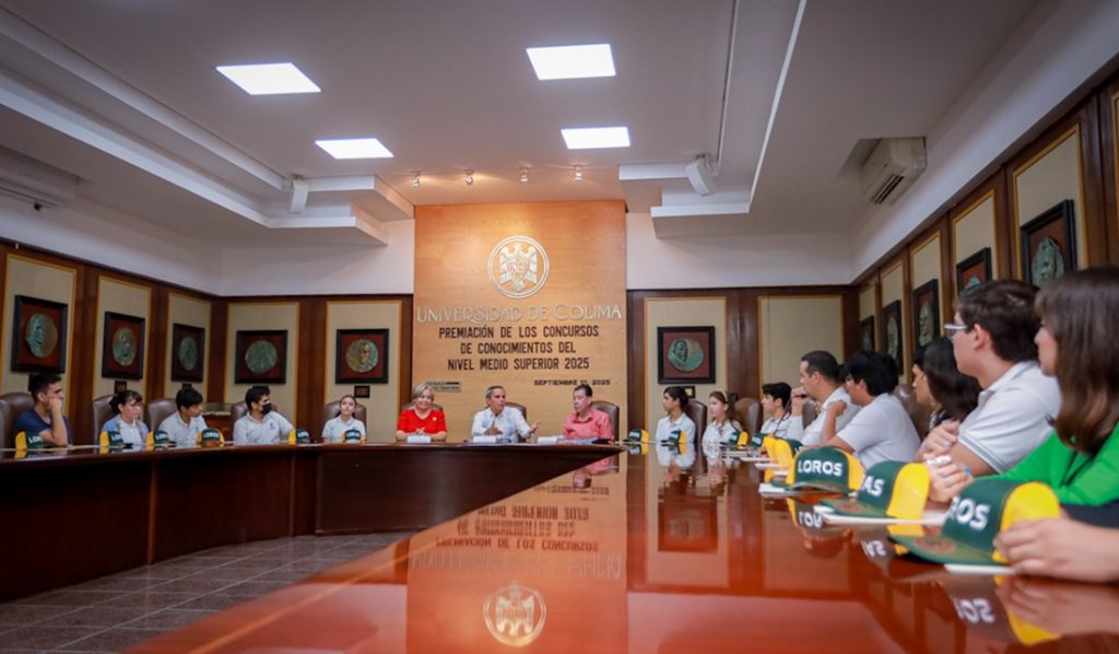 En la Sala de Juntas de Rectoría, se llevó a cabo la premiación de las y los ganadores de los concursos de conocimientos del nivel medio superior de la Universidad de Colima. El acto fue encabezado por el Rector Christian Jorge Torres Ortiz Zermeño, acompañado por Susana Aurelia Preciado, coordinadora general de Docencia; y Martín Robles de Anda, director general de Educación Media Superior.