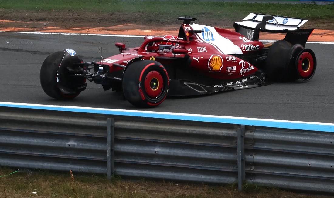Hamilton perdió el control de su monoplaza sobre la publicidad pintada con ligera llovizna y chocó contra la barrera en la curva 3, recibiendo además una penalización de 5 puestos en la parrilla para la próxima carrera por infringir la bandera amarilla en la vuelta de reconocimiento. Leclerc, por su parte, finalizó tras un contacto con Kimi Antonelli, quien recibió una sanción de 10 segundos, mientras que otro incidente con George Russell no derivó en penalización.