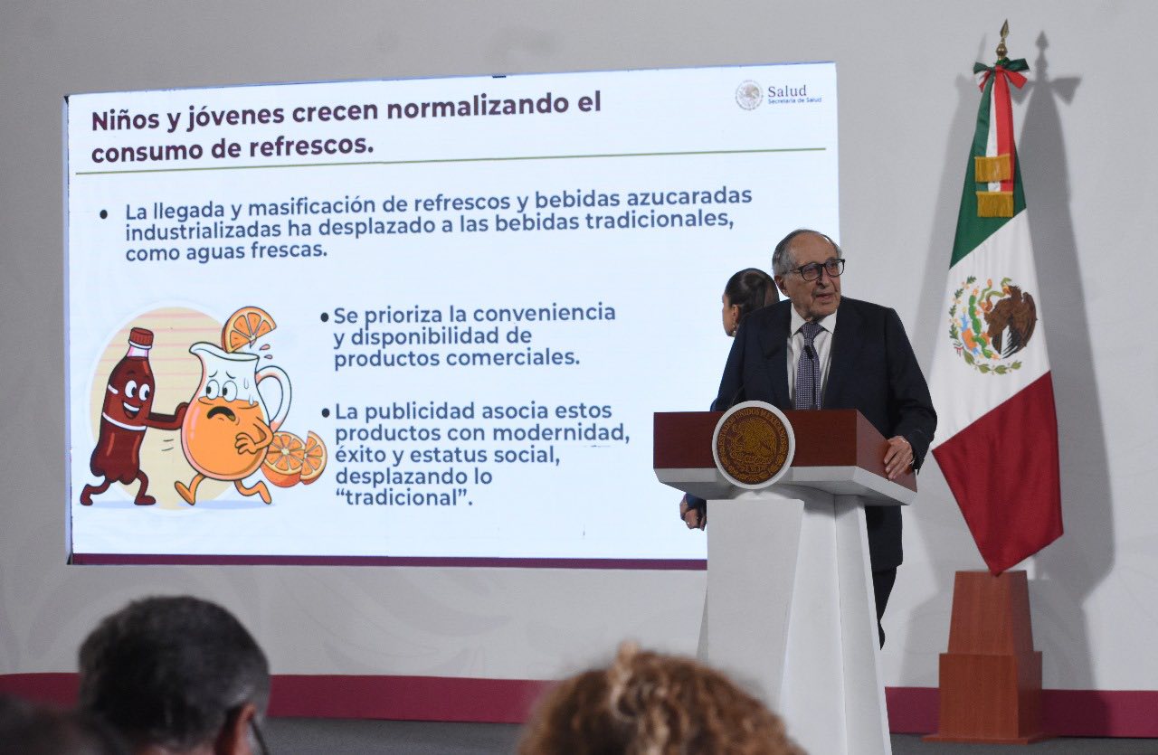 Este martes, en Palacio Nacional, explica Reforma, la SSa sostuvo que, en México, la costumbre de ofrecer un refresco en reuniones familiares, sociales o religiosas ha normalizado su ingesta desde edades tempranas.