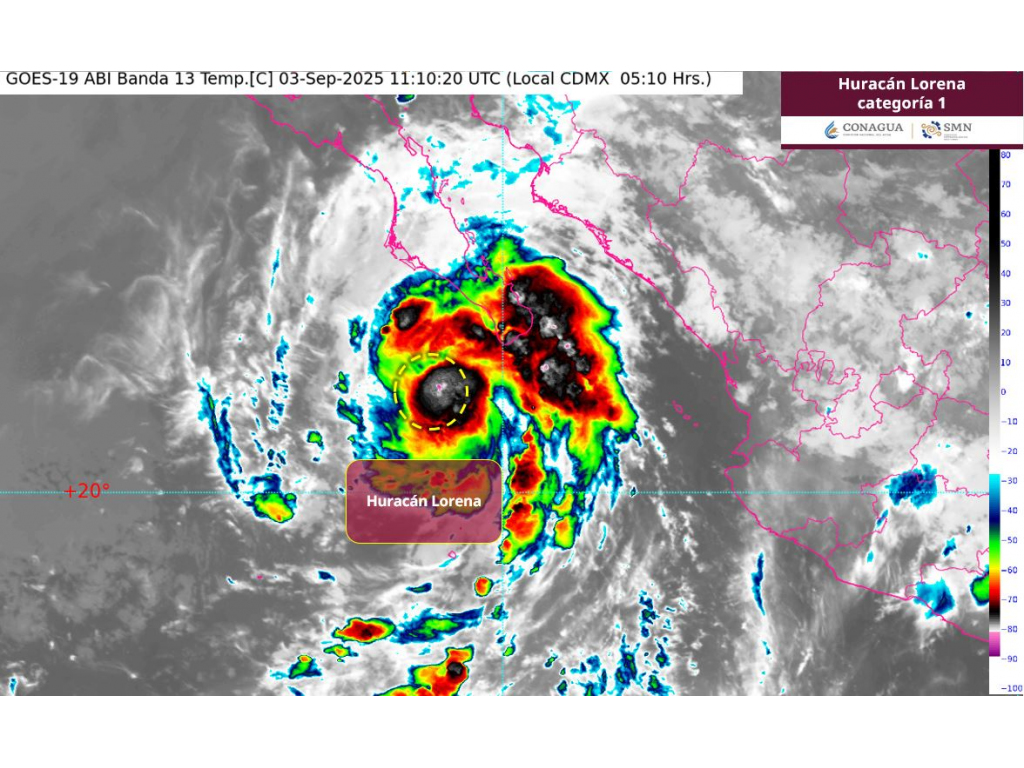 La circulación y desprendimientos nubosos del huracán Lorena, en combinación con el monzón mexicano y una vaguada en altura, favorecerán este miércoles lluvias muy fuertes a puntuales intensas en el occidente del país, incluida la entidad colimense, informó el Servicio Meteorológico Nacional (SMN).