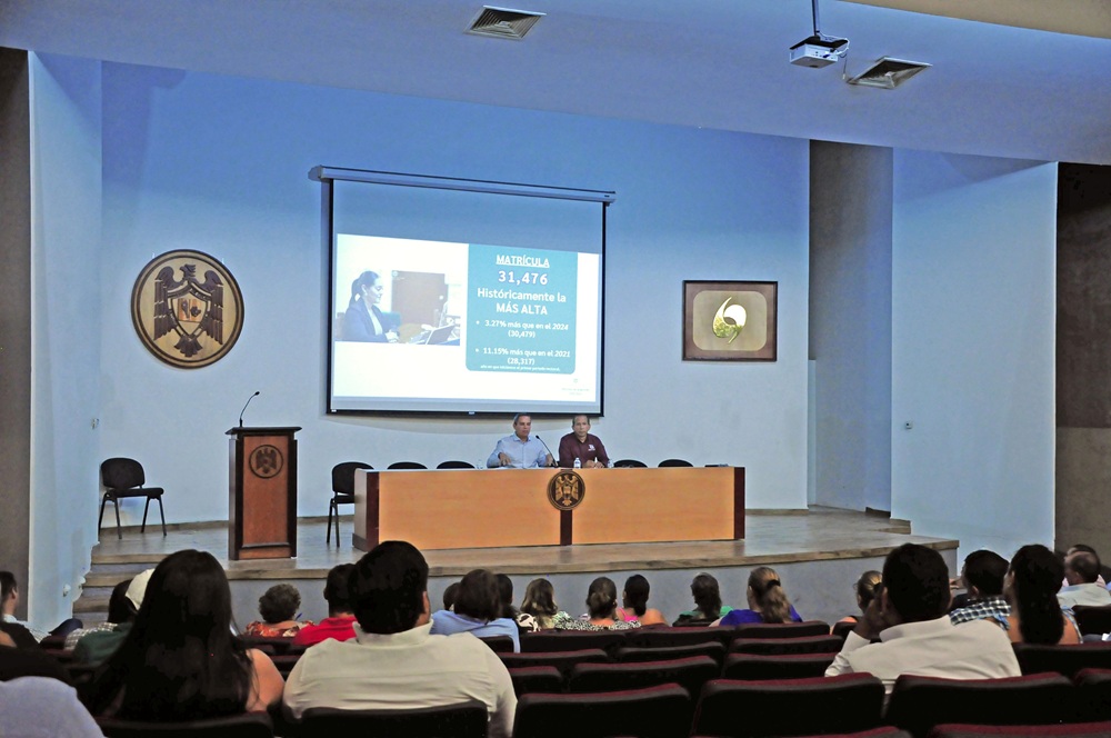 Durante el encuentro, el Rector ofreció una exposición clara y detallada sobre los principales avances de la Universidad de Colima en sus funciones sustantivas, haciendo énfasis en la ampliación de la oferta educativa, la alta absorción de la demanda estudiantil y la rehabilitación de espacios universitarios.