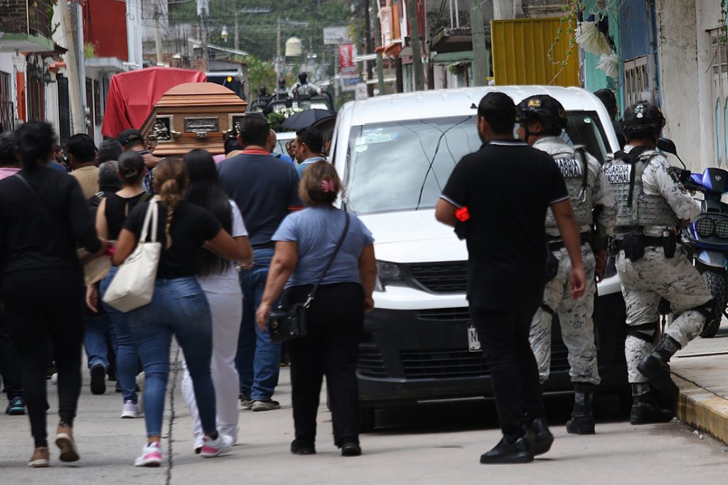 El funeral se llevó a cabo en la capital, Chilpancingo, con vigilancia de la Policía Estatal y la Guardia Nacional, que también acompañó el cortejo hasta Tixtla, en donde fue sepultado en el panteón del municipio que gobernó como alcalde de 2016 a 2018.