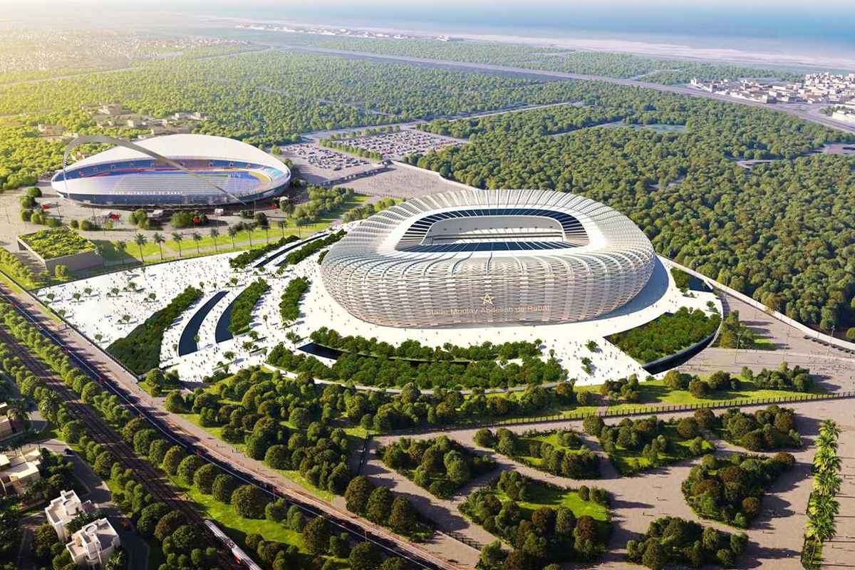 La reconstrucción del estadio fue ejecutada por empresas y arquitectos marroquíes y se enmarca en el programa de modernización de infraestructuras deportivas de cara a las grandes competencias internacionales.