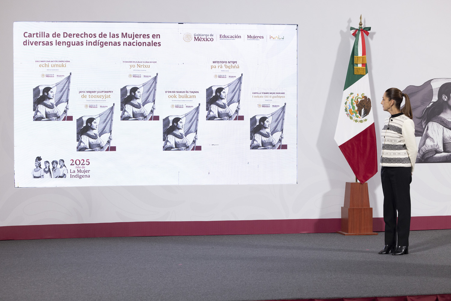 “Nosotros queremos reivindicar a las mujeres indígenas porque, primero, son esencia de México, son quienes transmiten la cultura y quienes transmiten las lenguas. De hecho, se llama “lengua madre” porque es de madre a hijos que se transmite principalmente. Y, además, reconocer el trabajo que realizan para sus familias. Y reivindicar que tienen todos los derechos, igual que cualquier otra mujer y que cualquier hombre; derechos especiales porque somos mujeres, pero todas tenemos derechos”, puntualizó en la conferencia matutina.