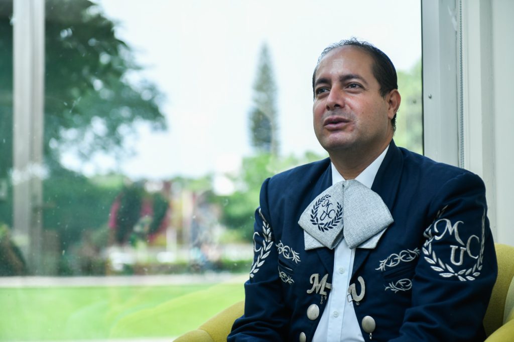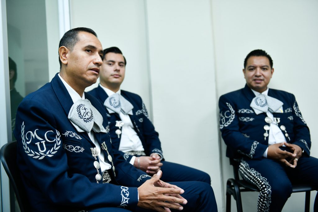 En la entrevista estuvieron presentes Eliseo Madrigal, director del mariachi, Samuel Méndez Hernández, guitarrista y voz; Armando Salazar, Edgar Saúl Mendoza Hernández, integrantes del mariachi, y Alejandra Ávila, de la Coordinación General de Vinculación.