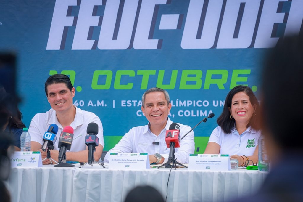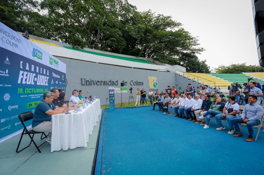 Desde la pista de atletismo del Estadio Olímpico Universitario, se anunció en una rueda de prensa la onceava edición de la Carrera FEUC-UdeC, “En unidad por el egreso”, que se llevará a cabo el 19 de octubre como parte de las celebraciones por el 85 aniversario de la Universidad de Colima (UdeC). El anuncio fue encabezado por el Rector Christian Jorge Torres Ortiz Zermeño y la presidenta de la Federación de Egresados (FEUC), Carolina Venegas Ochoa.