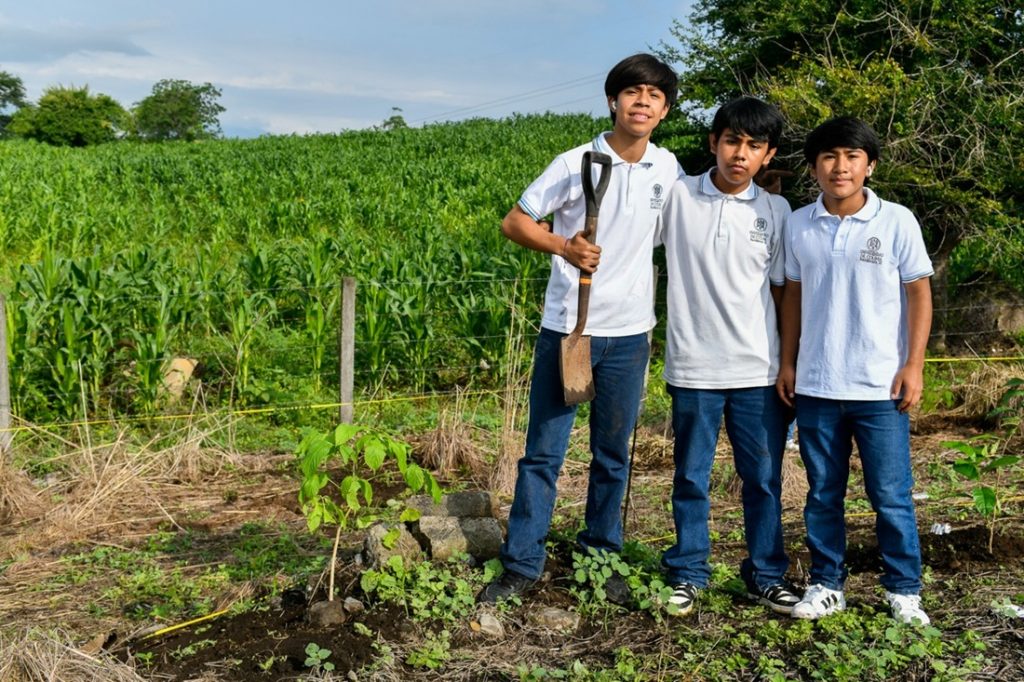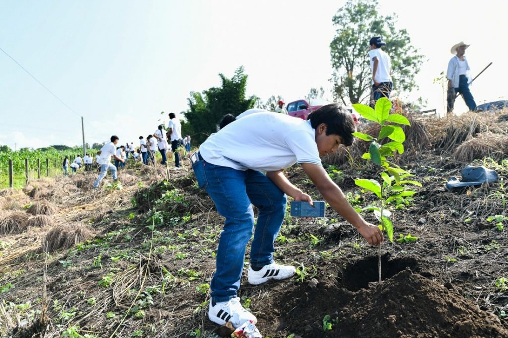 Los y las estudiantes del primer semestre del bachillerato, junto con sus profesoras y profesores, personal administrativo y de servicios generales, así como personal del programa estatal “Sembrando Vida”, plantaron los 80 árboles.