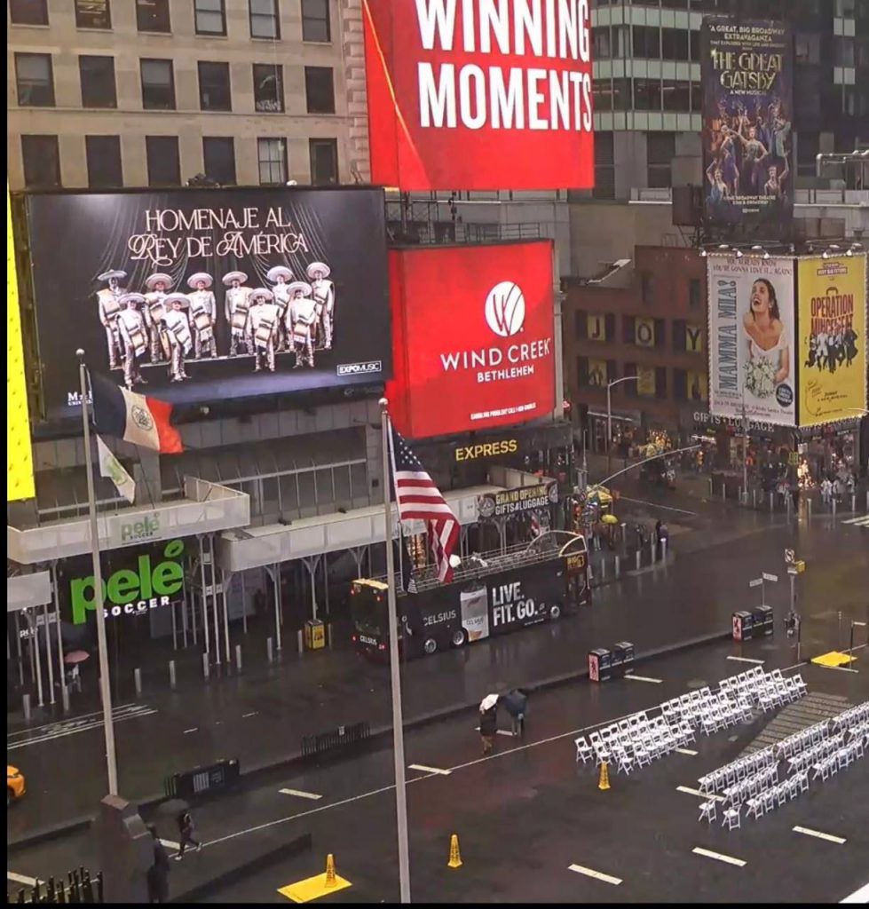 La portada del nuevo disco “Homenaje al Rey de América”, del Mariachi Universidad de Colima, se proyectó a lo largo de este miércoles 10 de septiembre en Times Square, Nueva York, una de las zonas más emblemáticas y concurridas del mundo.