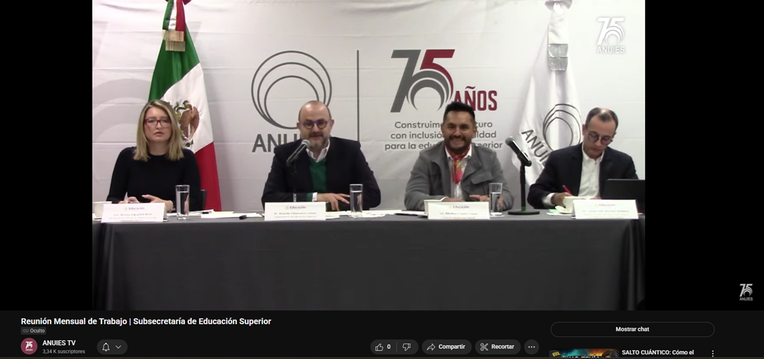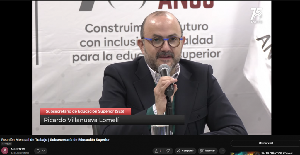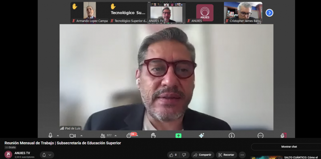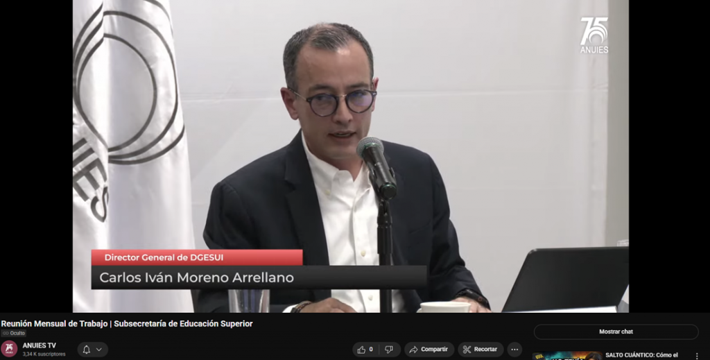 Acompañando al subsecretario de Educación Pública, estuvieron Luis Armando González Plasencia (Vía Zoom), secretario general ejecutivo de la ANUIES, y Carlos Iván Moreno Arellano, director general de Educación Superior Universitaria e Intercultural (DGESUI).