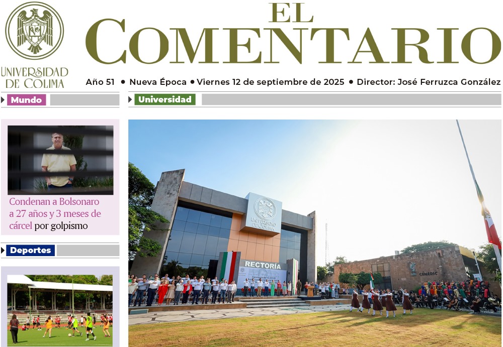 Autor Redacción Ver todas las entradas Comparte esto: Haz clic para compartir en Facebook (Se abre en una ventana nueva) Facebook Haz clic para compartir en X (Se abre en una ventana nueva) X Me gusta esto:Me gusta Cargando... Relacionado Navegación de entradas Edición del jueves – 11 de septiembre 2025 – El Comentario Versión Issuu Edición especial – 85 años de la fundación de la Universidad de Colima