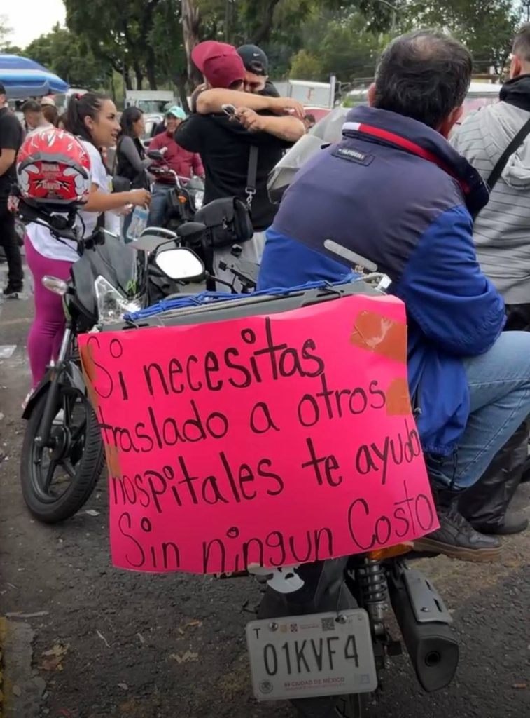 “Después de ver los videos de las personas que estaban sufriendo las quemaduras, cómo se quejaban y cómo necesitaban el apoyo para poder trasladarse con todo el tráfico que había, un carro no era la mejor opción, por ello buscamos la manera de poder transportar a las personas a un hospital más cercano, a emergencias o a los familiares que querían desplazarse”, explicó Hernández, junto a su moto.