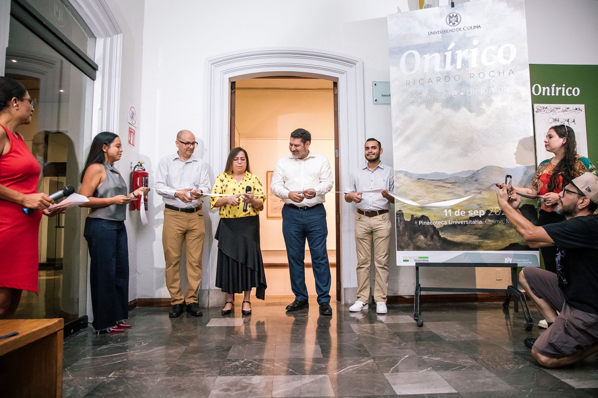 La Pinacoteca Universitaria de la Universidad de Colima inauguró la exposición “Onírico” del reconocido pintor Ricardo Rocha, una muestra que recorre desde sus inicios -en el rigor académico y la experimentación gráfica-, hasta llegar a sus paisajes de atmósferas surrealistas donde rinde homenaje a su pareja, Guadalupe Sobarzo y a sus padres.