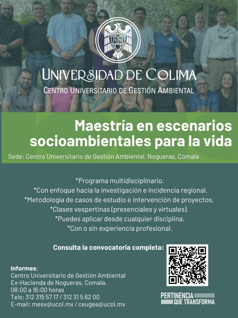 Cabe destacar que este posgrado está adscrito a la Facultad de Arquitectura y Diseño y las clases se impartirán en el CEUGEA, ubicado en Nogueras. Para más información, las personas interesadas pueden escribir a: mesv@ucol.mx.