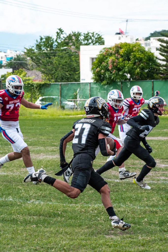 De acuerdo con un comunicado de prensa, en un encuentro disputado bajo un intenso calor en la Guarida del Jaguar, los felinos dominaron desde el primer cuarto y ampliaron su ventaja en la segunda mitad, destacando con anotaciones explosivas, incluidas 2 por vía aérea en jugadas de largo yardaje.