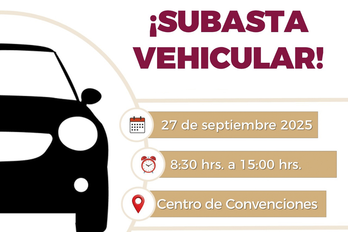 La Secretaría de Planeación, Finanzas y Administración (Seplafina) y la Subsecretaría de Administración, convocan a la ciudadanía a participar en la Subasta Vehicular 2025, que se llevará a cabo el sábado 27 de septiembre, de 8:30 de la mañana a 3 de la tarde en el Centro de Convenciones del Complejo Administrativo, en esta capital colimense.